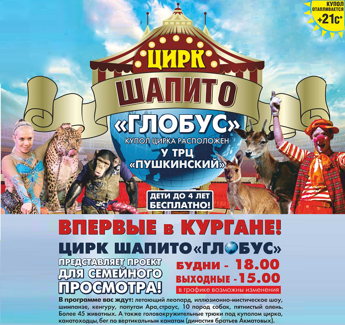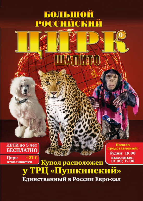 В программе вас ждут: летающие леопарды под куполом цирка, иллюзионно-мистическое шоу, шимпанзе, кенгуру, попугай Ар, страус, 10 пород собак, пятнистый олень. Более 45 животных. А также головокружительные трюки под куполом цирка, канатоходцы, бег по вертикальным канатам (династия братьев Акматовых) и много другое....