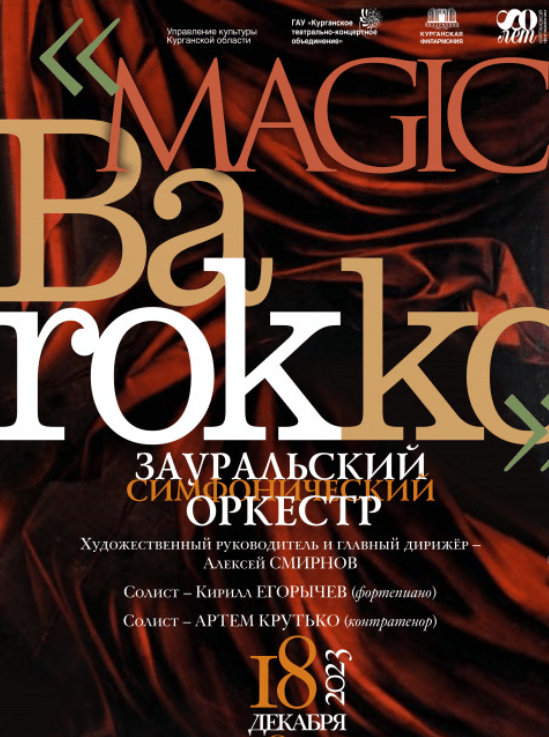 Поэтому музыка эпохи барокко не потеряет своей актуальности никогда. Прямое подтверждение этому, наследие композитора И.С. Баха.Арии из опер А. Вивальди и Г. Генделя, знаменитые мелодии Г. Глюка прозвучат в исполнении Артема Крутько. Его удивительный голос — контртенор. Это самый высокий из мужских оперных голосов. К тому же — редкий. Артем является лауреатом многочисленных конкурсов, солирует на самых престижных оперных сценах, и его появление на сцене Курганской филармонии — несомненная удача!
